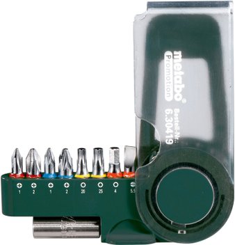 рабочий размер биты: H3, H4, H5, H6, PH1, PH2, PH3, PZ0, PZ1, PZ2, PZ3, SL3, SL4, SL5, SL5.5, SL6, SL6.5, SL7, T10, T15, T20